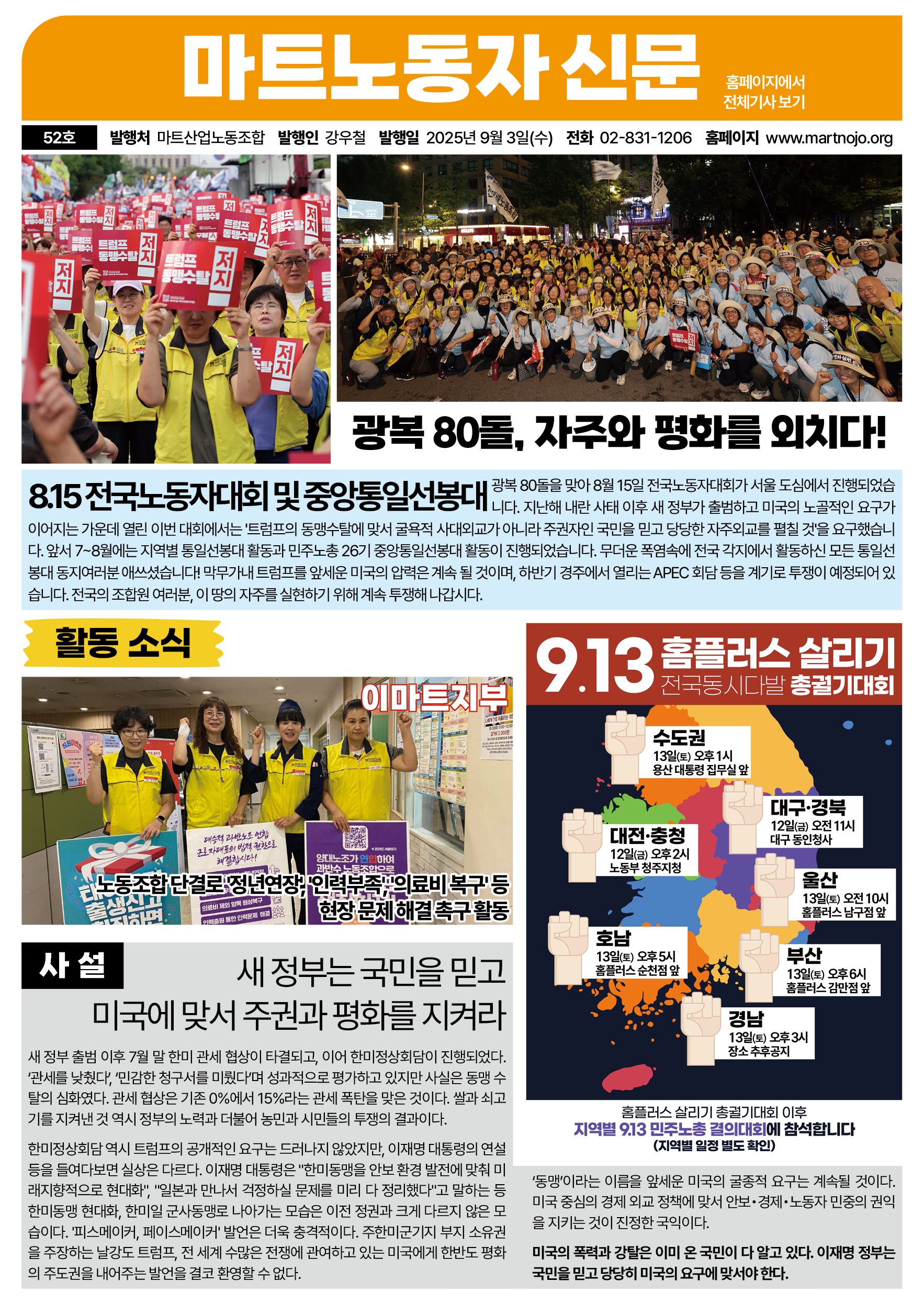 광복 80돌 8.15전국노동자대회 및 평화·주권·역사정의 실현 8·15 범시민대회