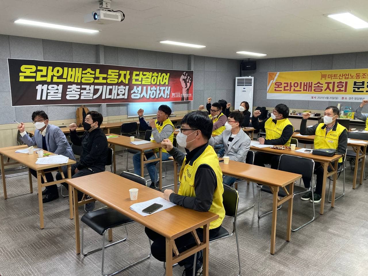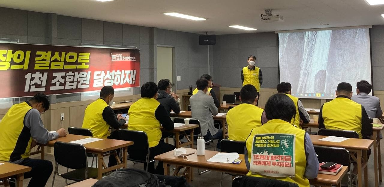 이수암 지회장은 마무리 발언에서 ‘노동조합을 한 지 1년 만에 이렇게 모여 너무 감격스럽다’며 소회를 밝혔고 참가자들 모두 투쟁을 잘 하자고 결심했습니다. 짧은 시간이 아쉬웠던만큼 다음에는 더 많은 분회장들과 함께 하자며 소감을 나누었습니다.