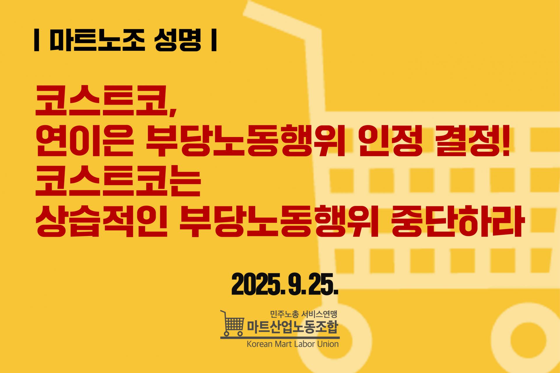 9월25일, 교섭해태의 부당노동행위를 인정한 중앙노동위원회의 결정을 수용하지 않고 행정소송을 제기한 코스트코에게 재판부가 다시한번 그 행위가 명백한 부당노동행위임을 확인시켰다.