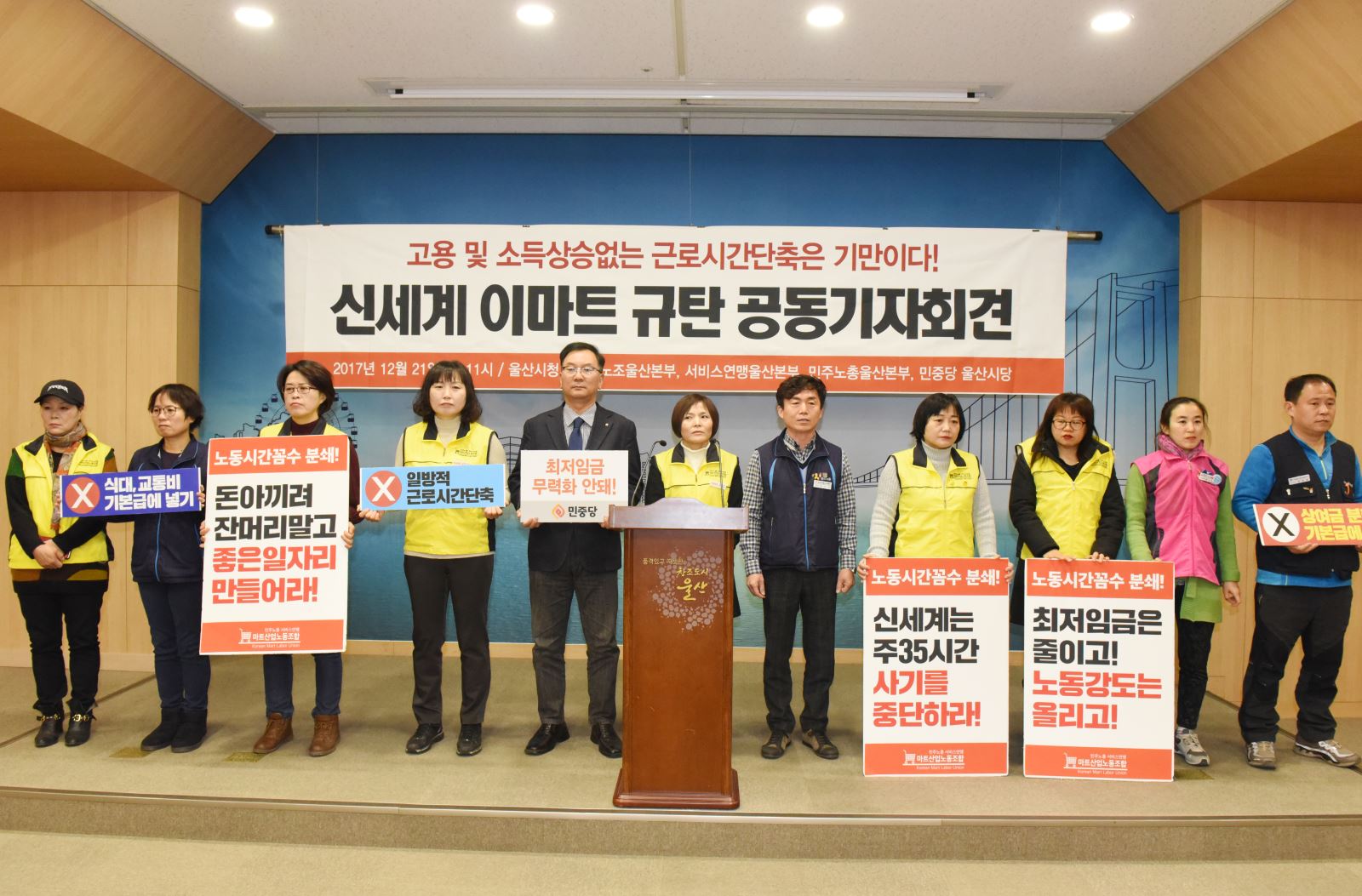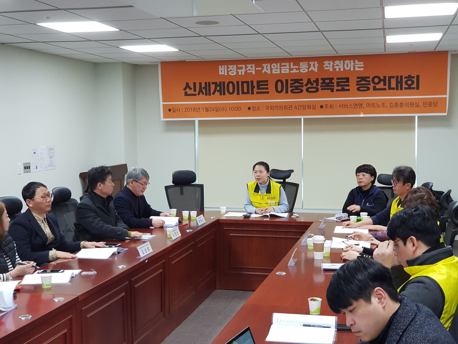 지난 1월 24일에도 서울 여의도 국회의원회관에서 민중당 김종훈 의원실과 마트노조는 '비정규직 저임금노동자 착취하는 신세계-이마트의 이중성을 폭로하는 증언대회'를 열고 이마트 사측이 비정규직-저임금노동자를 착취하고, 저질일자리를 양산하고 있다고 주장했다.